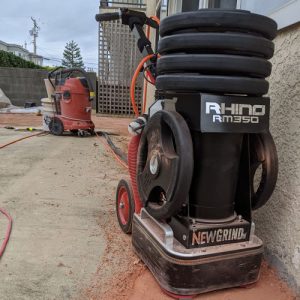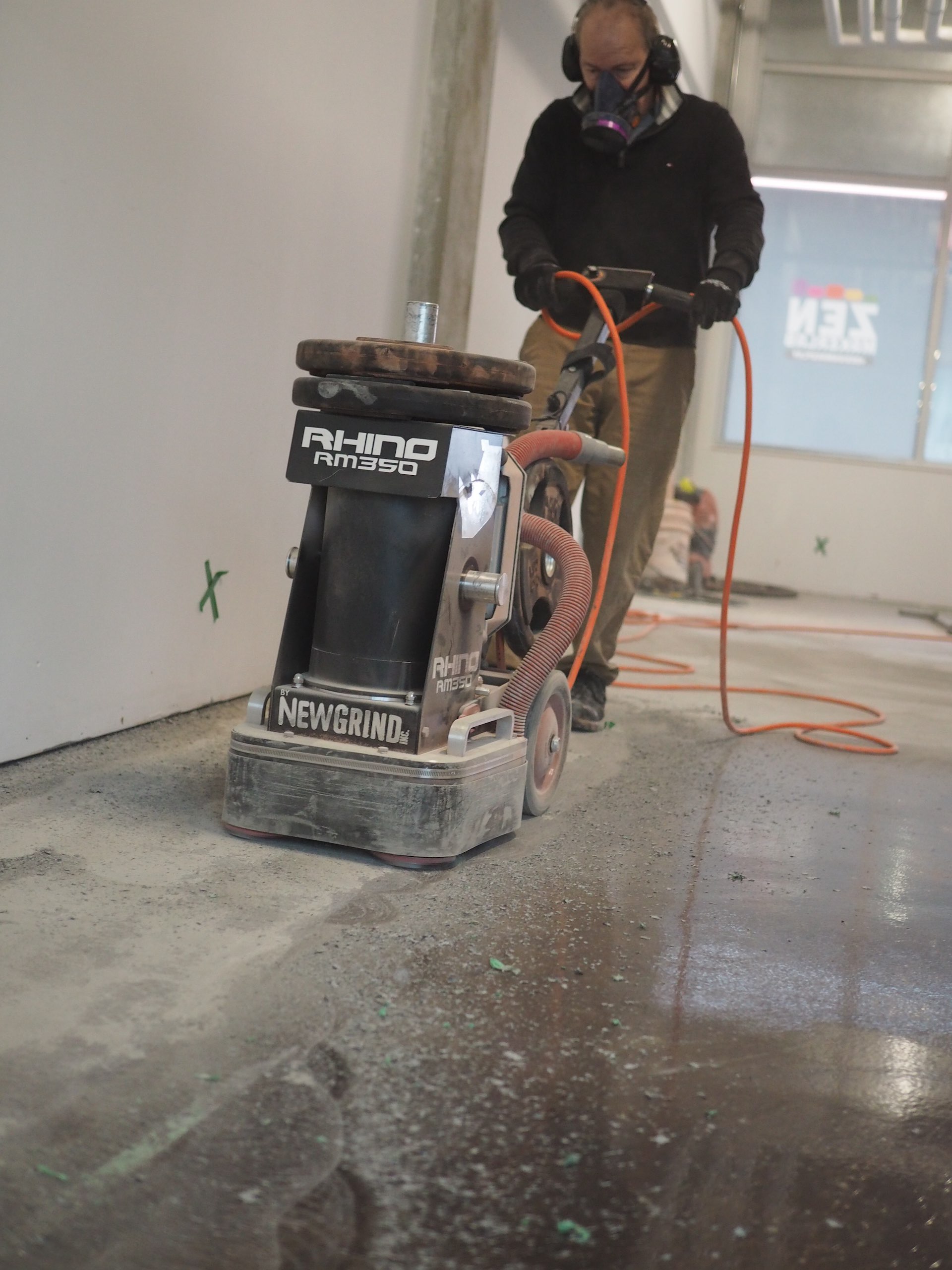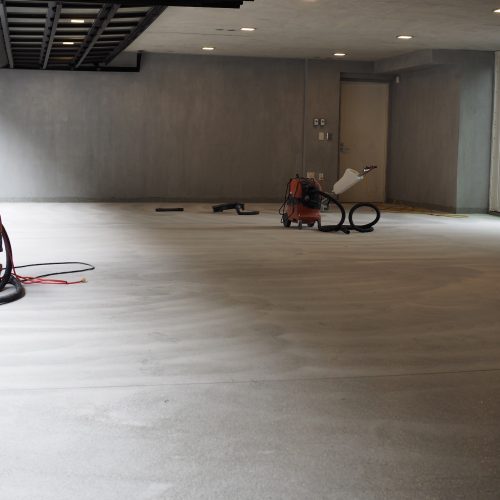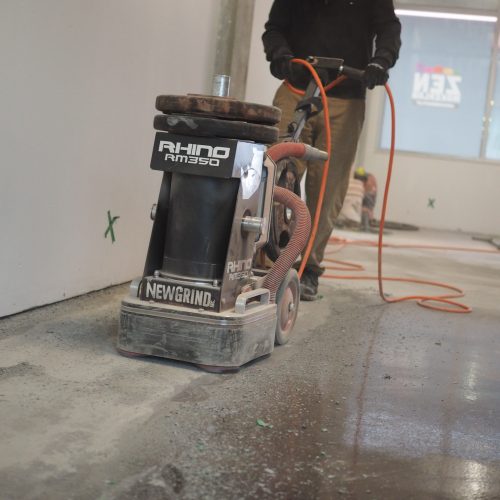 Our team prepares your floor with a special sanding tool, ensuring it’s smooth and even. Then, using a bit of water, we check the floors to ensure they are perfect for the epoxy application.